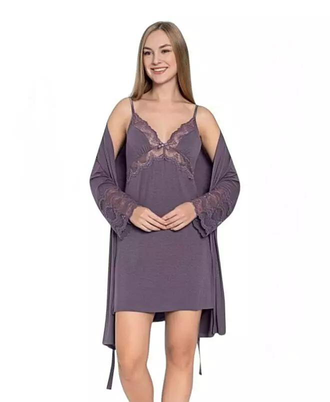 нічної сорочки оздобленої мереживом на тонких бретелях та