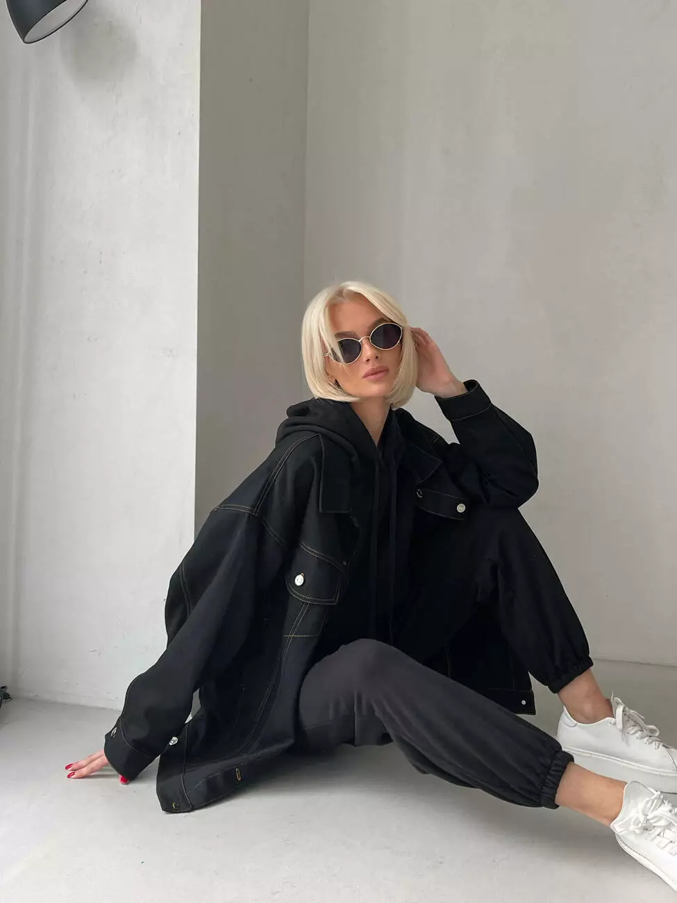 Куртка має вільний крій для повної свободи рухів, занижену лінію плечей, манжети на ґудзиках, нагрудні кишені з клапаном на ґудзиках.