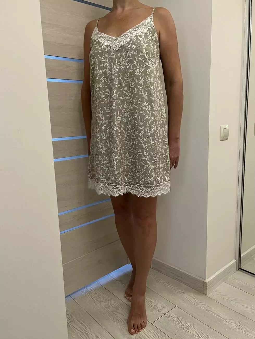 Делікатне мереживо на декольте та по краю сорочки робить образ особливим — романтичним і витонченим. Вона ідеально підходить як для спокійних вечорів вдома, так і для того, щоб відчувати себе неперевершено навіть під час сну.