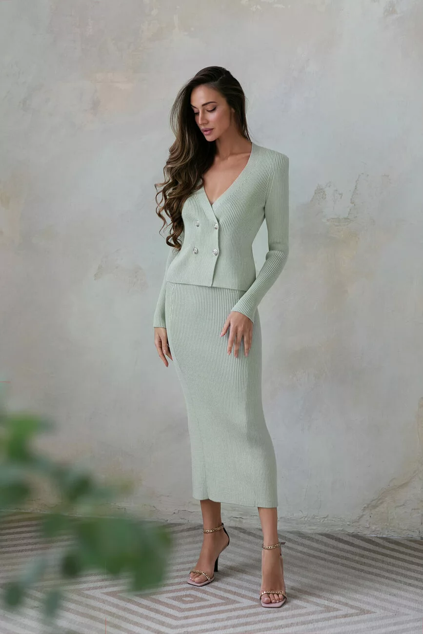 Спідниця міді прямого фасону зі шліцею, виконана з ніжної натуральної бавовни.