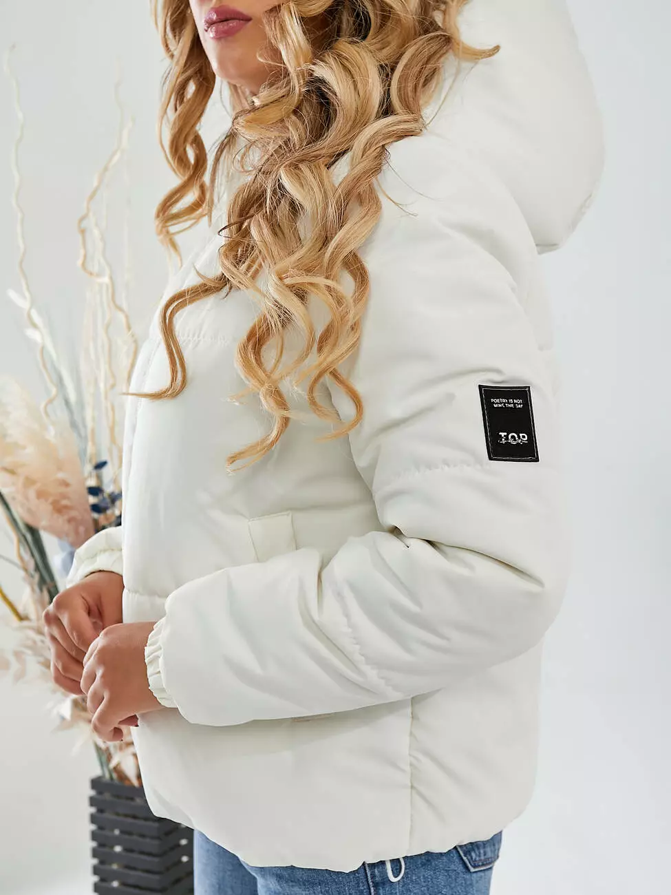 Куртка зимова с капюшоном білого кольору