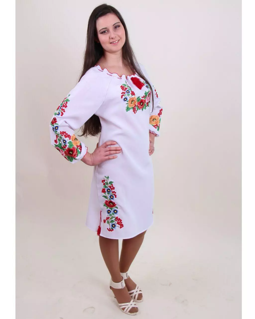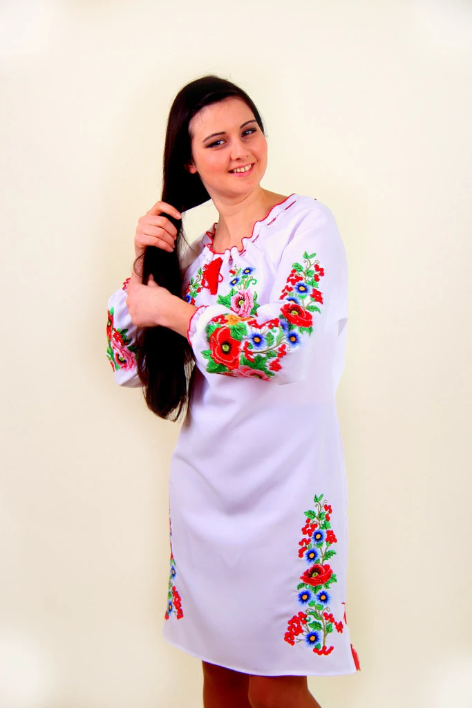 Вишукана вишиванка "Діана" з довгим рукавчиків на гумці. Вишита спеціальними якісними нитками, які призначені забезпечувати яскравість і стійкість вишивки при постійному використанні, а гладьевый візерунок з плавними переходами кольору не залишить байдужою жодну дівчину! Дуже ніжно виглядають разом маки, калина і волошки в соковито-зелених листках!