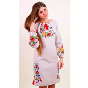 Вишукана вишиванка "Діана" з довгим рукавчиків на гумці. Вишита спеціальними якісними нитками, які призначені забезпечувати яскравість і стійкість вишивки при постійному використанні, а гладьевый візерунок з плавними переходами кольору не залишить байдужою жодну дівчину! Дуже ніжно виглядають разом маки, калина і волошки в соковито-зелених листках!