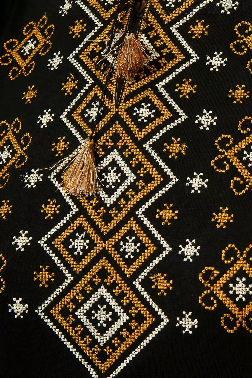 Жіноча вишиванка із довгим рукавом чорного кольору «Карпатський орнамент (коричнева вишивка)»