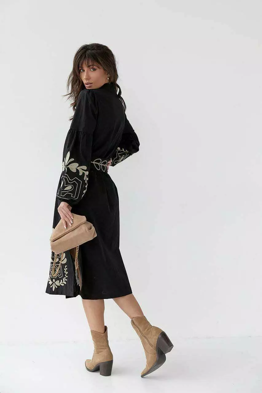 Жіноче плаття з вишивкою під пояс 5300