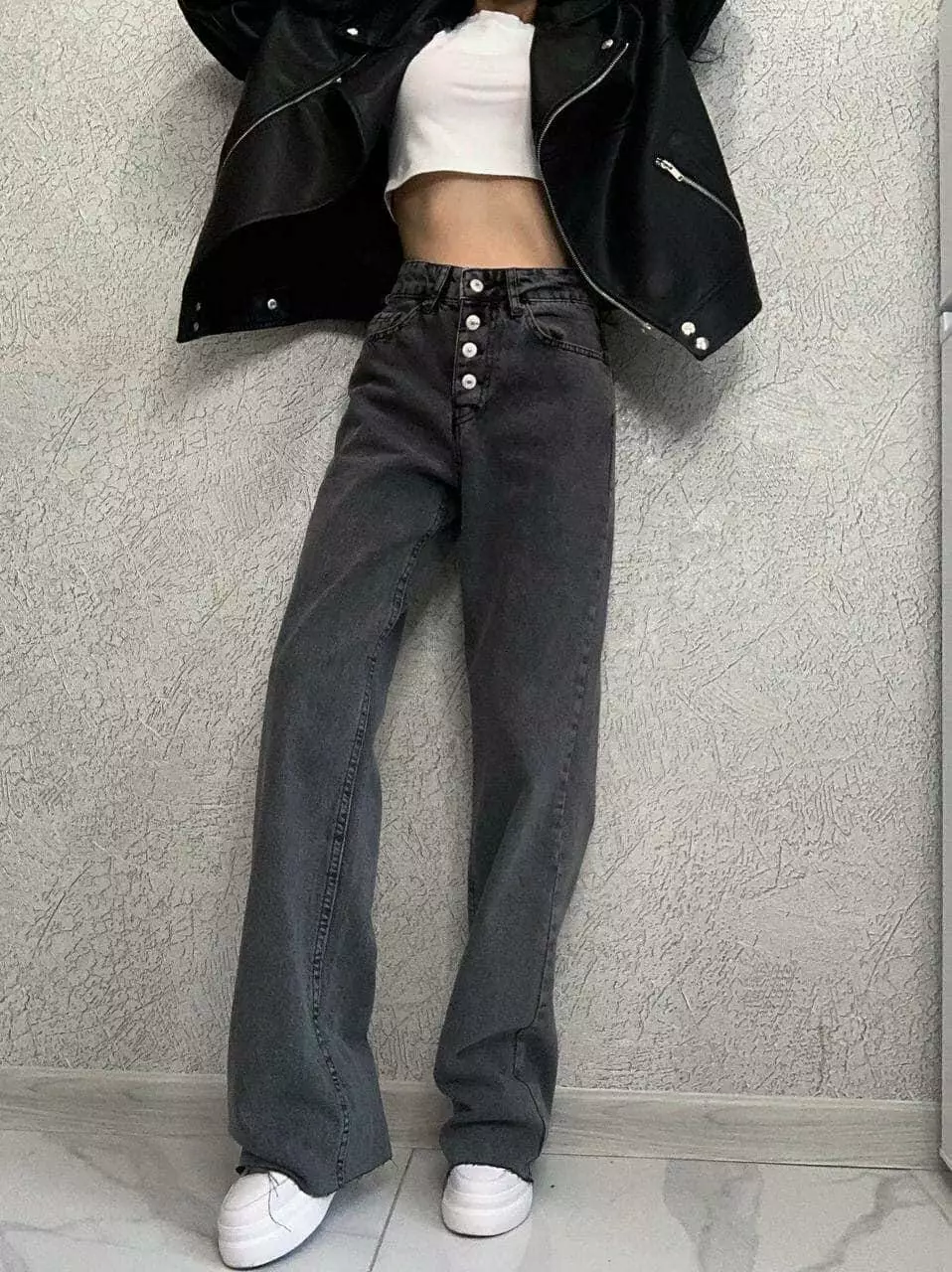 Жіночі джинси-палацо з ґудзиками й обрізаним низом РОЗМІР 30 (L)