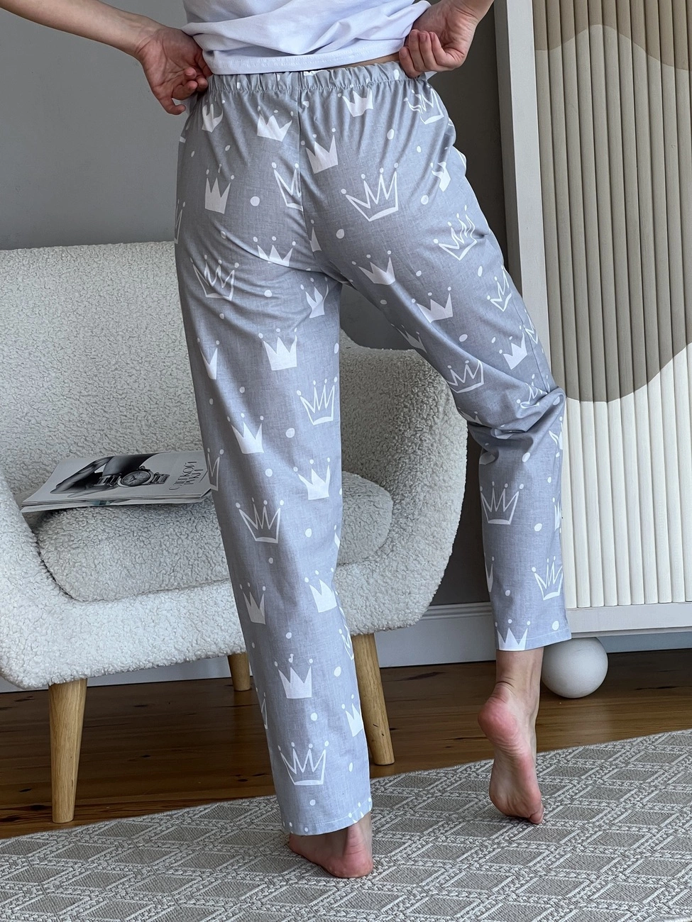Жіночі Піжамні штани COSY з бязі сірі з білими Коронами C211P