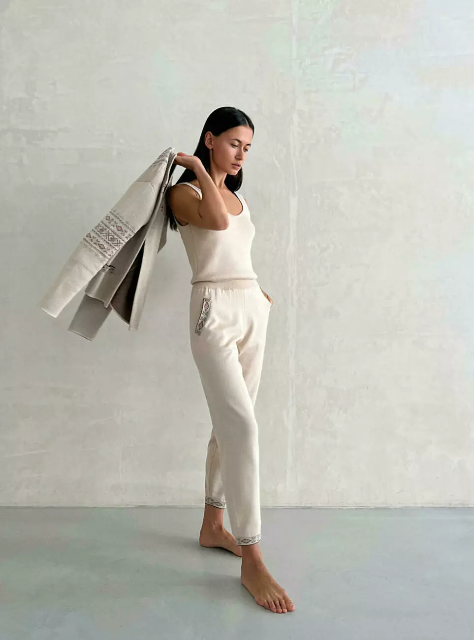 Звужені штани джогера з автентичним орнаментом унизу та на кишенях. Вільний розслаблений крій з елементами вишивки допоможе створити цікавий та легкий образ. Поєднується в комплект із топом та жакетом Сила поколінь та з іншими брендовими кардиганами