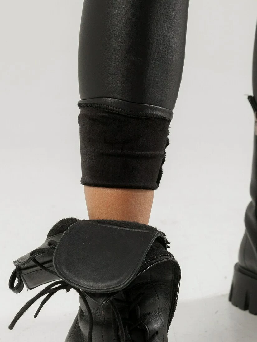 Жіночі утеплені лосини з еко-шкіри з велюром з ефектом ботфортів - чорний