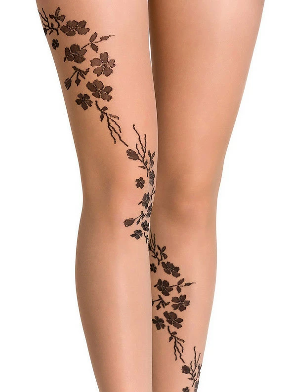 Враження жіночих колготок з витонченим декоративним малюнком, що оточує ноги. Без позначених трусиків і усиновлених пальців.