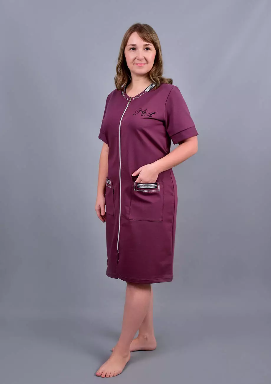 Жіночий халат Casual Chic – це стиль та комфорт у кожному русі. Виготовлений із трикотажної двунитки, яка відзначається міцністю, практичністю та м'якістю. Двунитка – це різновид трикотажу, що має гладку поверхню та петлі на вивороті, що робить тканину щільною та приємною до тіла. Завдяки класичному крою халат чудово підходить для повсякденного носіння вдома.