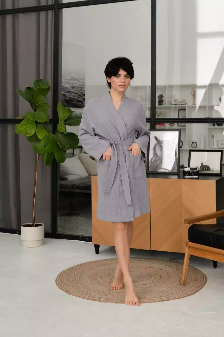 Жіночий халат COSY Duna із фактурного мусліну сірий