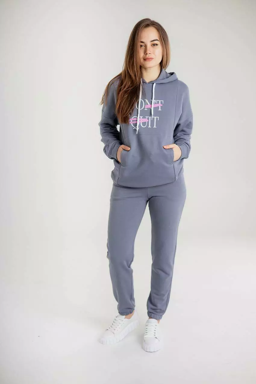 Жіночий костюм з худі та джогерами з написом "Don't quit" —