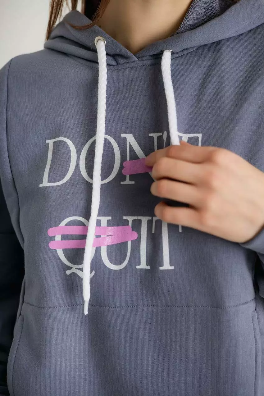 складається з худі з мотиваційним написом "Don't quit" та зручних