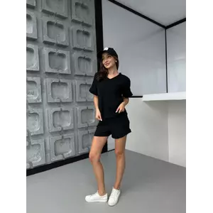 Комплект складається з вільної футболки з V-подібним вирізом і шортів з кишенями.