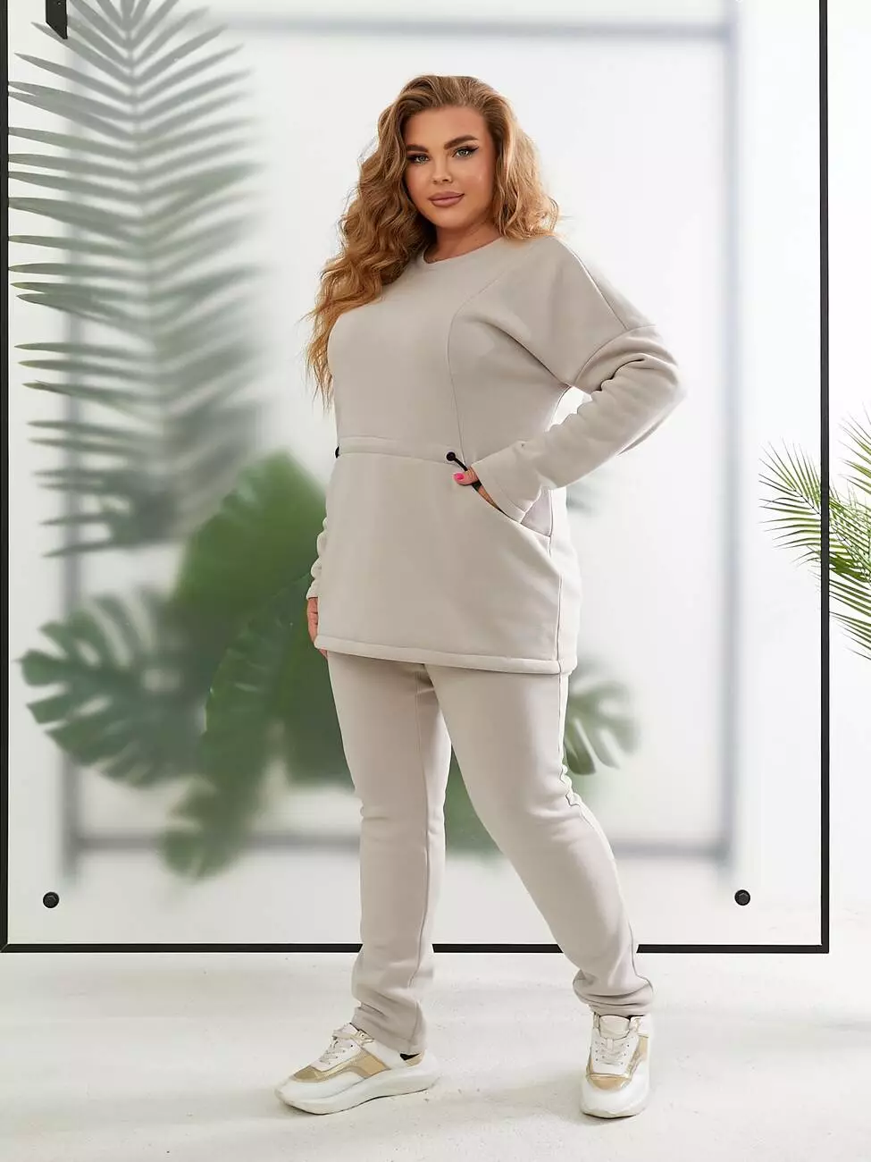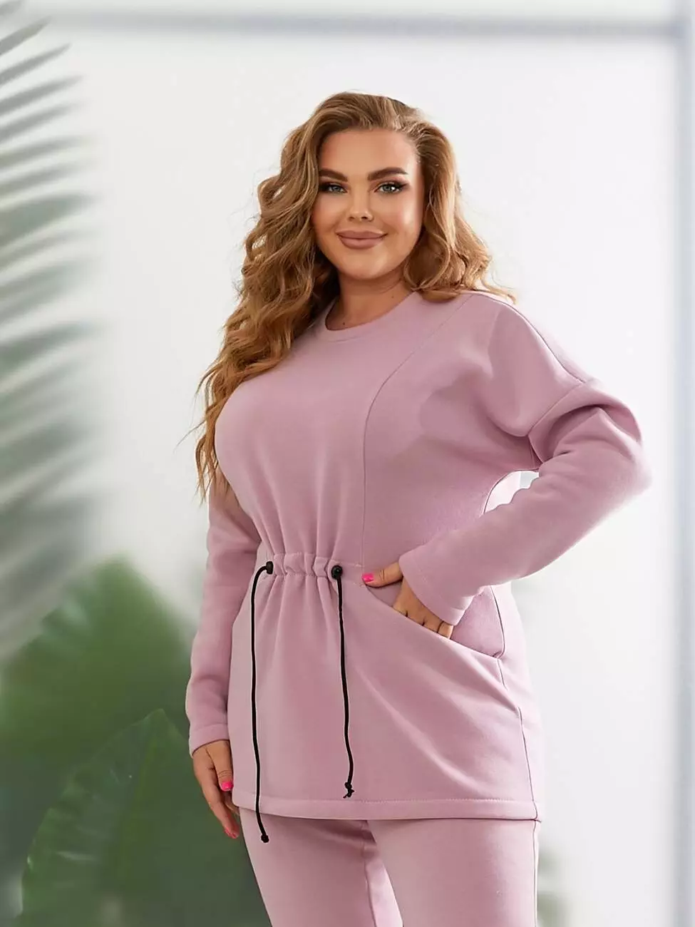 Жіночий прогулянковий костюм, туніка і штани, синій, пудра, бежевий, 48/50, 52/54, 56/58 розміри