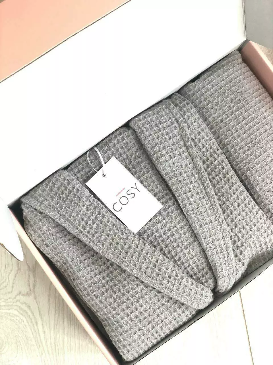 Жіночий Подарунковий набір COSY Халат капюшон з рушником Сірий у коробці