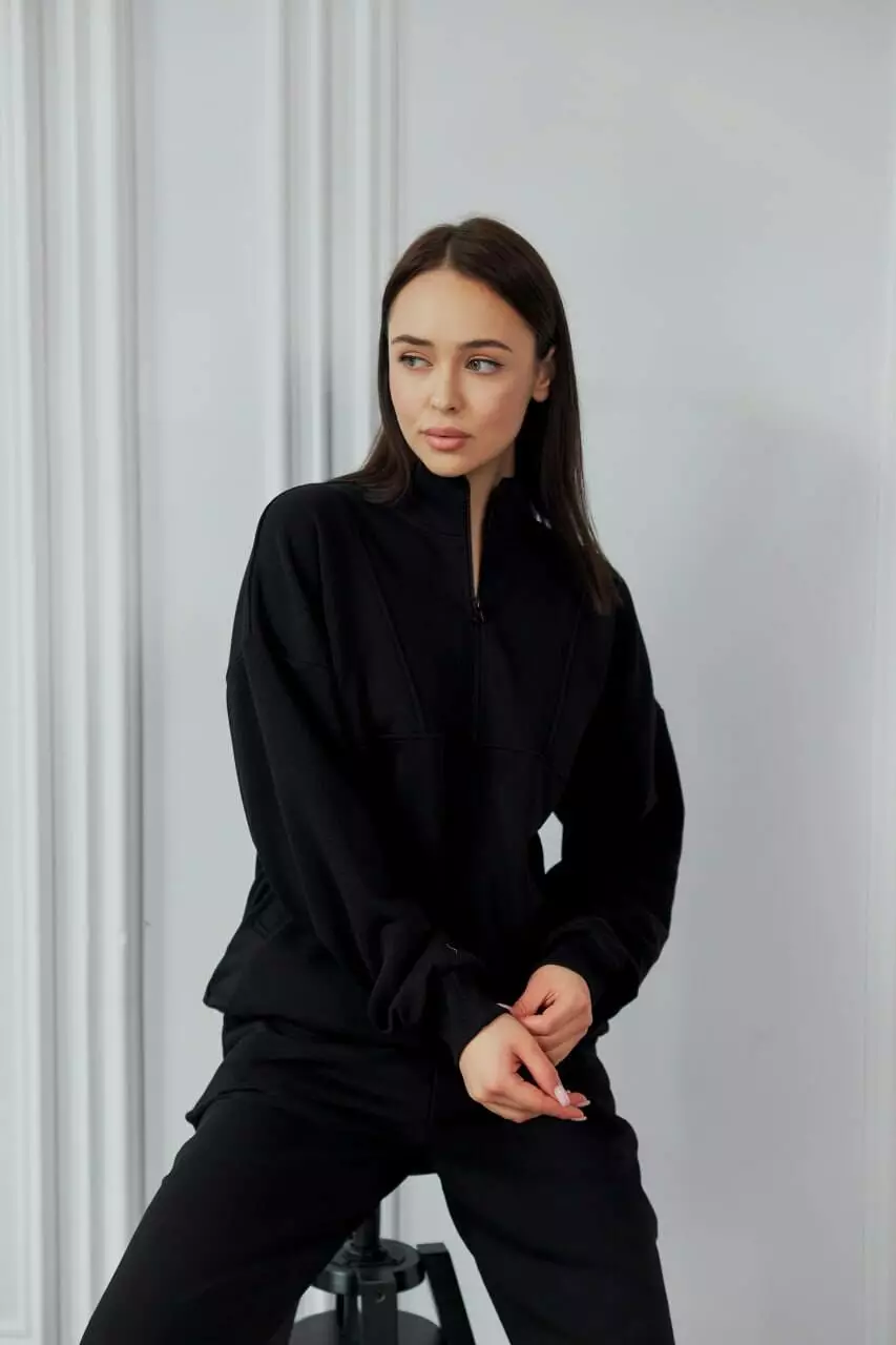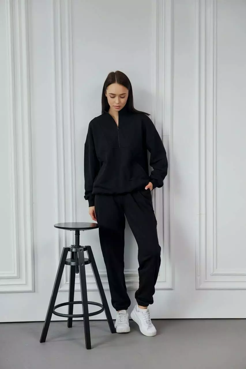 кофту-бомбер на замку з коміром і штани з широкою прошитою резинкою