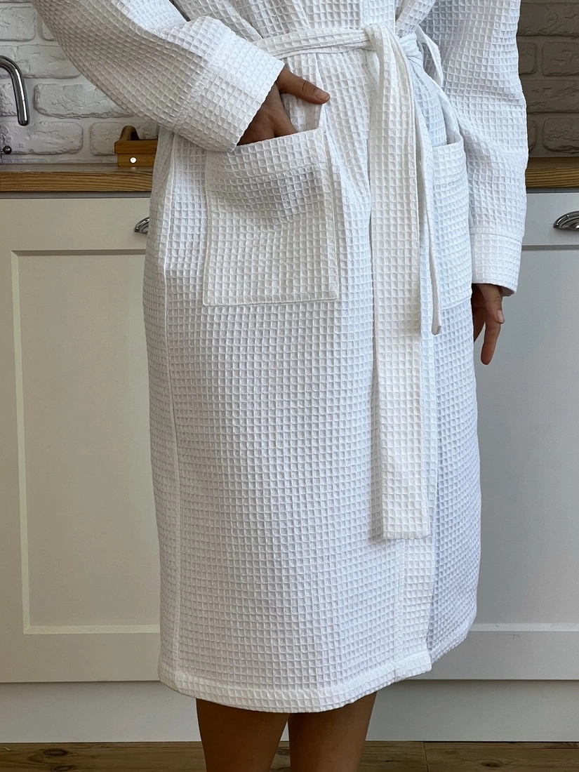 Завдяки своїй м'якості та унікальній здатності поглинати вологу вафельна тканина є однією з найпопулярніших серед бавовняних тканин. Зручний довгий халат незамінна річ у вашому гардеробі