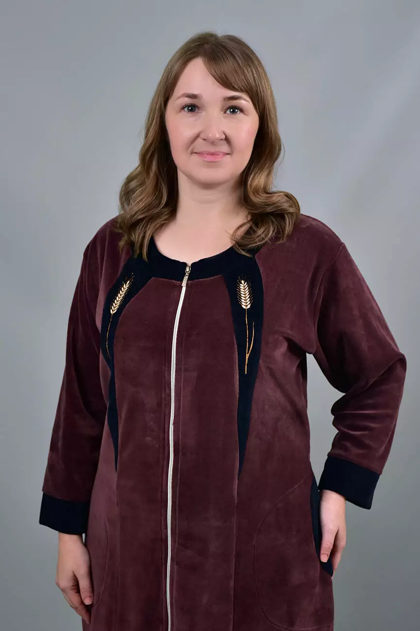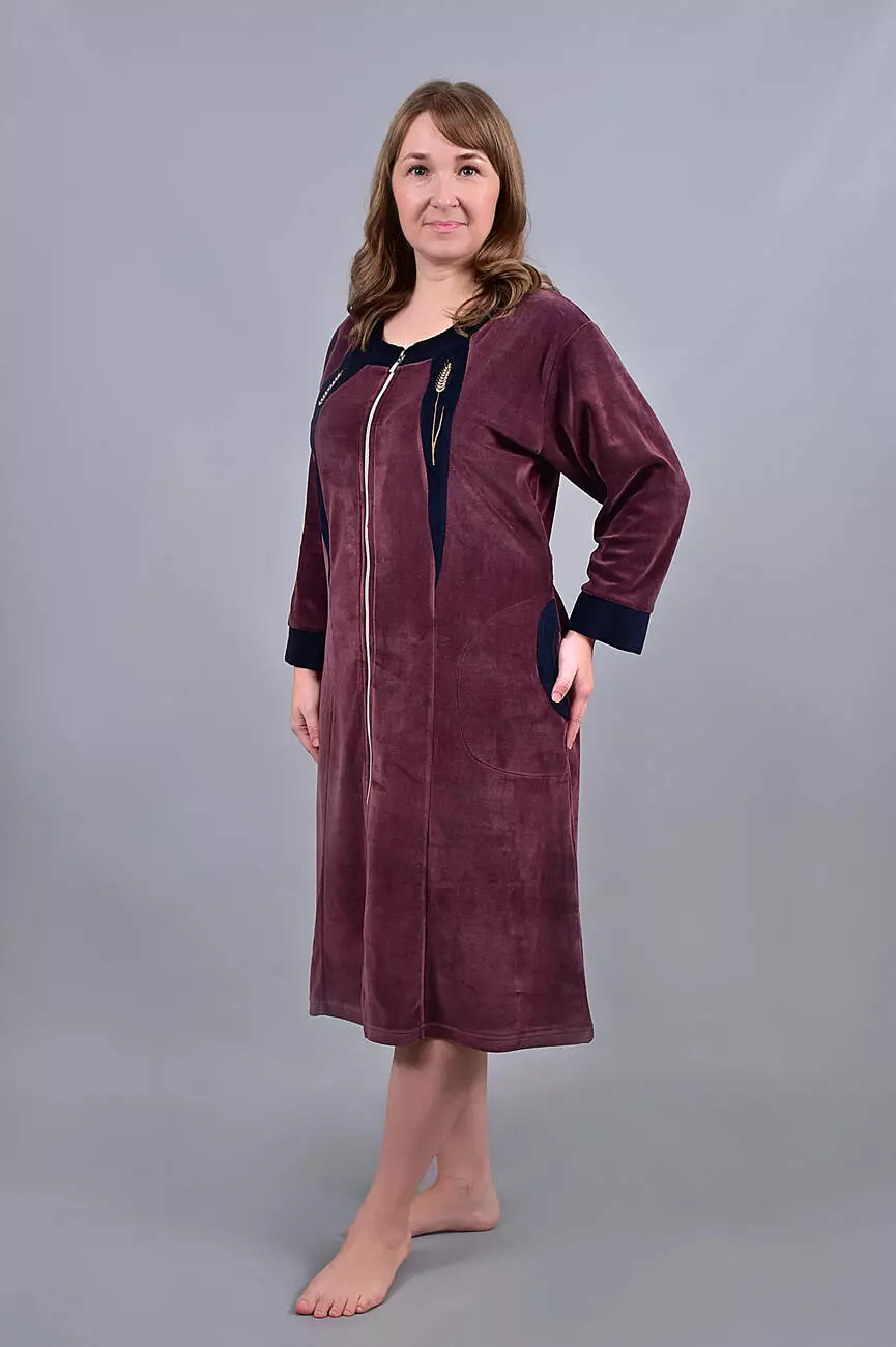 Про тканину: Бавовняний велюр - надзвичайно м'яка та приємна на дотик, матова трикотажна тканина. З лицьового боку з короткими ворсинками, з виворітного - гладка. Матеріал добре «дихає», гігієнічний. У складі тканини є еластан, завдяки йому тканина добре тягнеться і ідеально підходить для домашняго одягу.