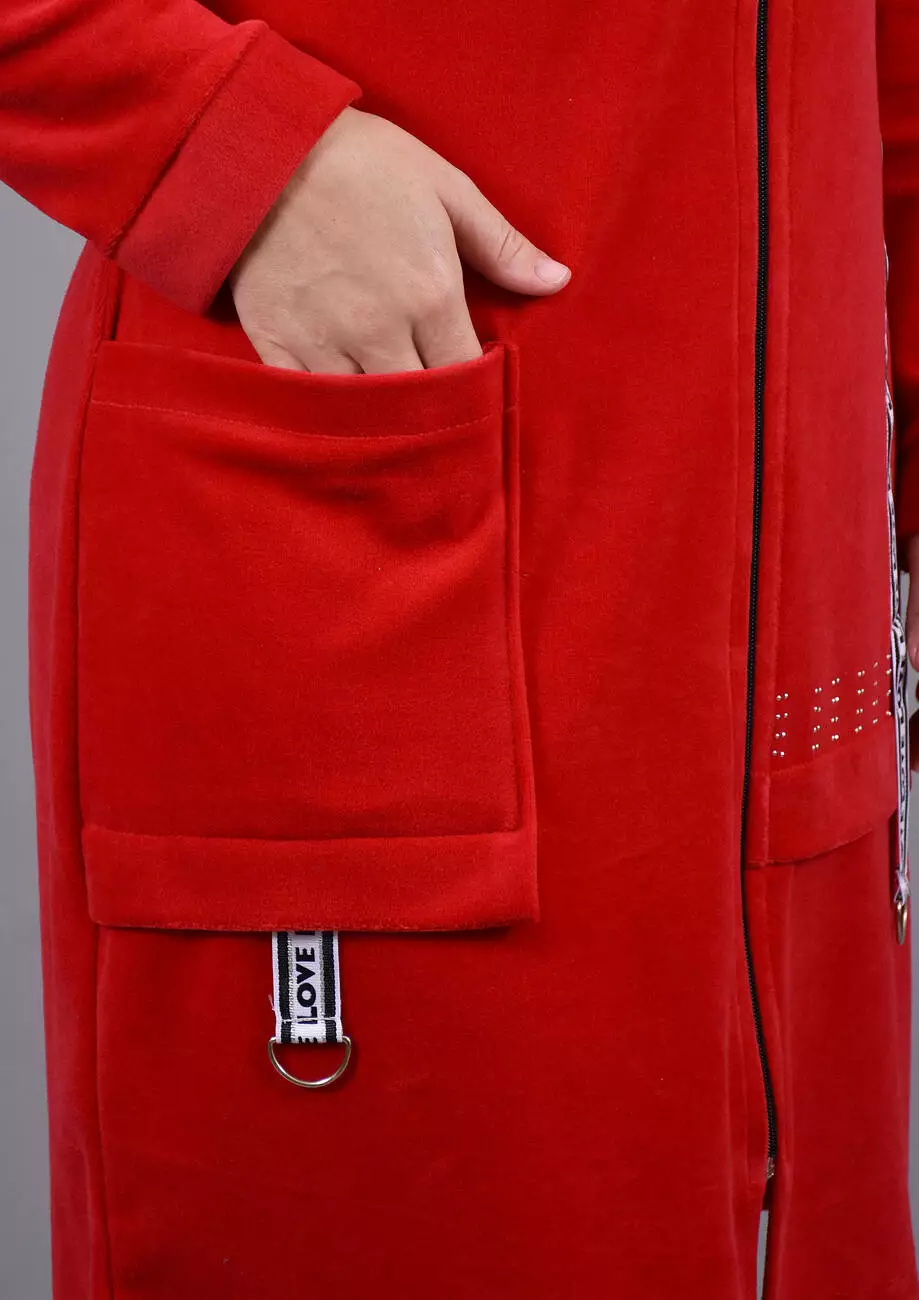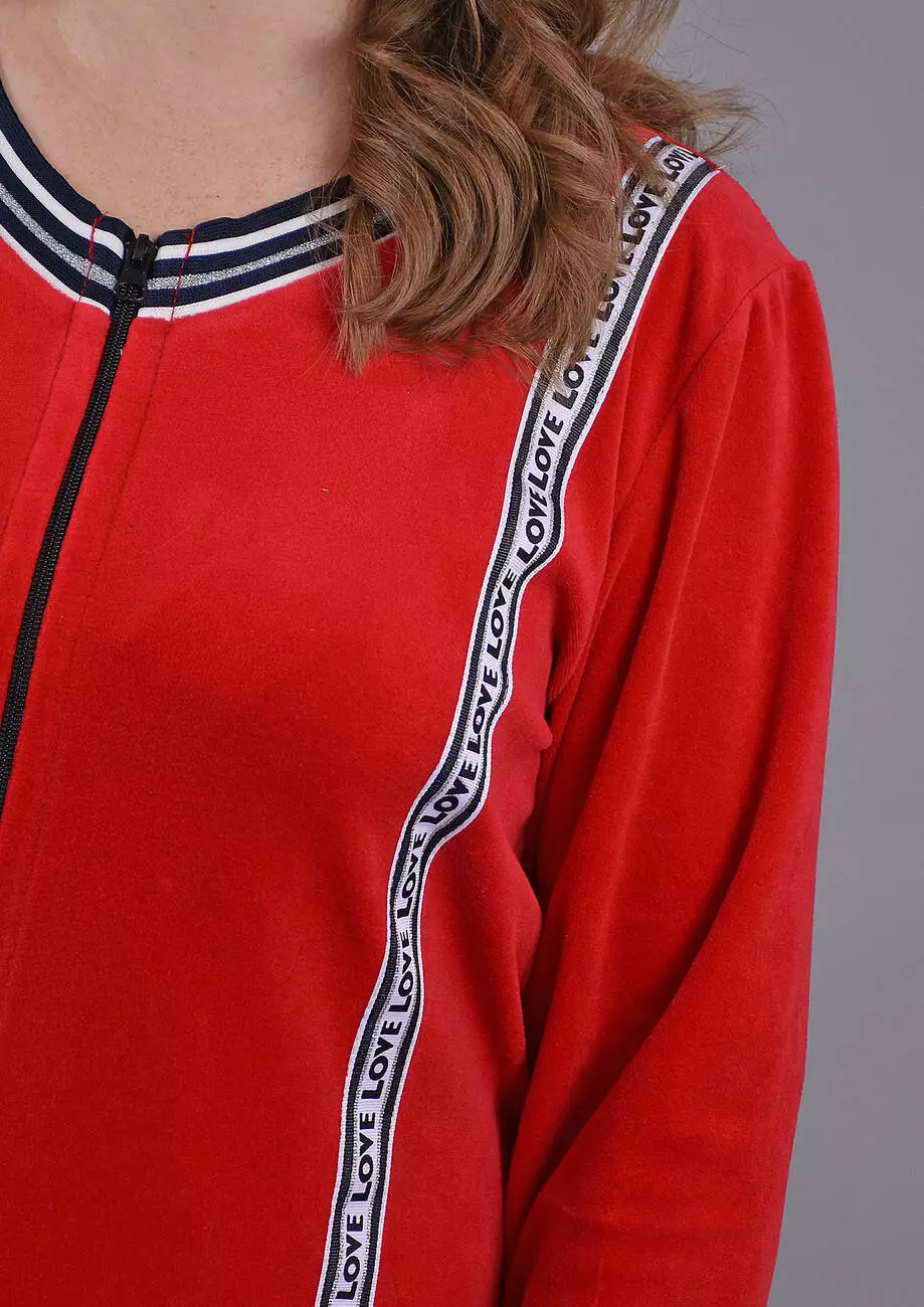 Про тканину: Бавовняний велюр - надзвичайно м'яка та приємна на дотик, матова трикотажна тканина. З лицьового боку з короткими ворсинками, з виворітного - гладка. Матеріал добре «дихає», гігієнічний. У складі тканини є еластан, завдяки йому тканина добре тягнеться і ідеально підходить для домашняго одягу.