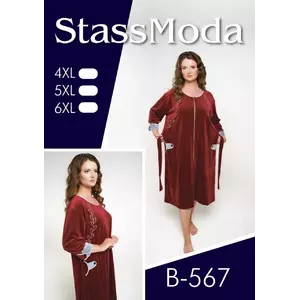 Жіночий велюровий халат Luxury Velvet з довгими рукавами і круглою горловиною Stass Moda