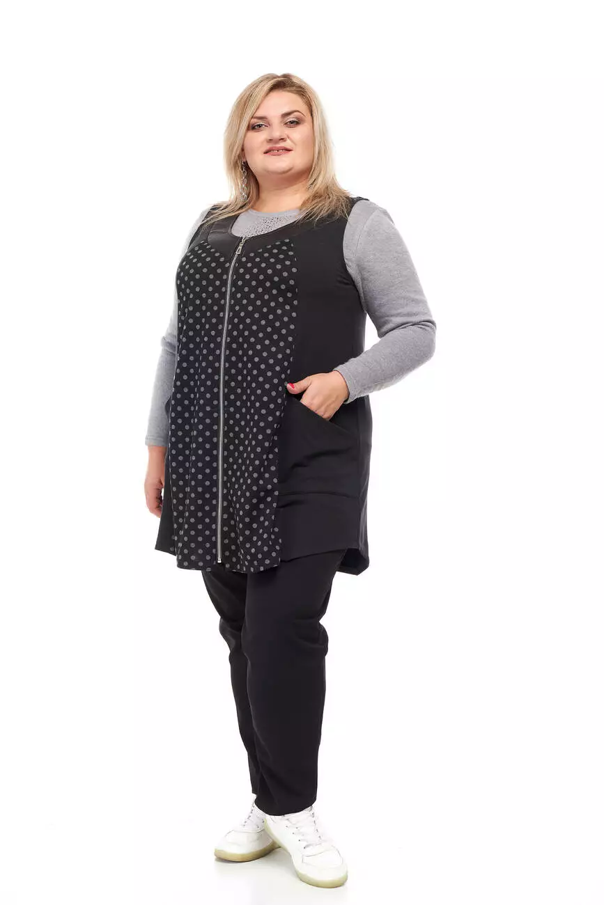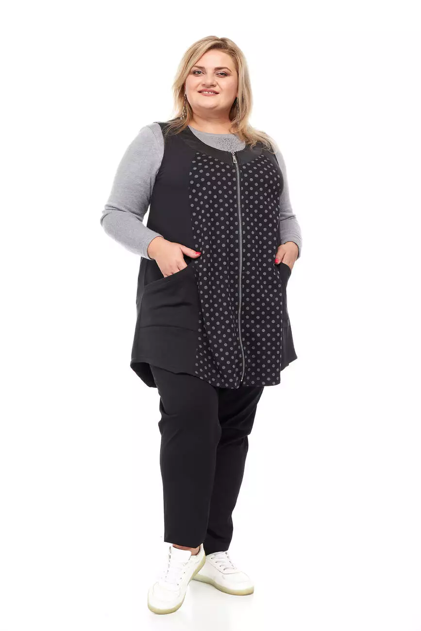 Жіночий жилет "Капітошка" комбінований на блискавці з кишенями