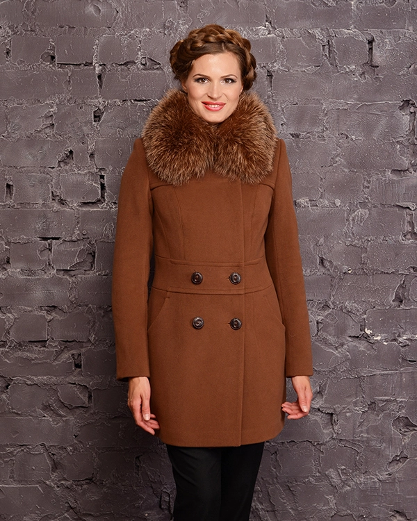 Пальто зимнее, вортоник из песца, вышевка на поясе. Застежка - молния, кармены прорезные на молниях. Длина 95 см. Размерный ряд 44-54.