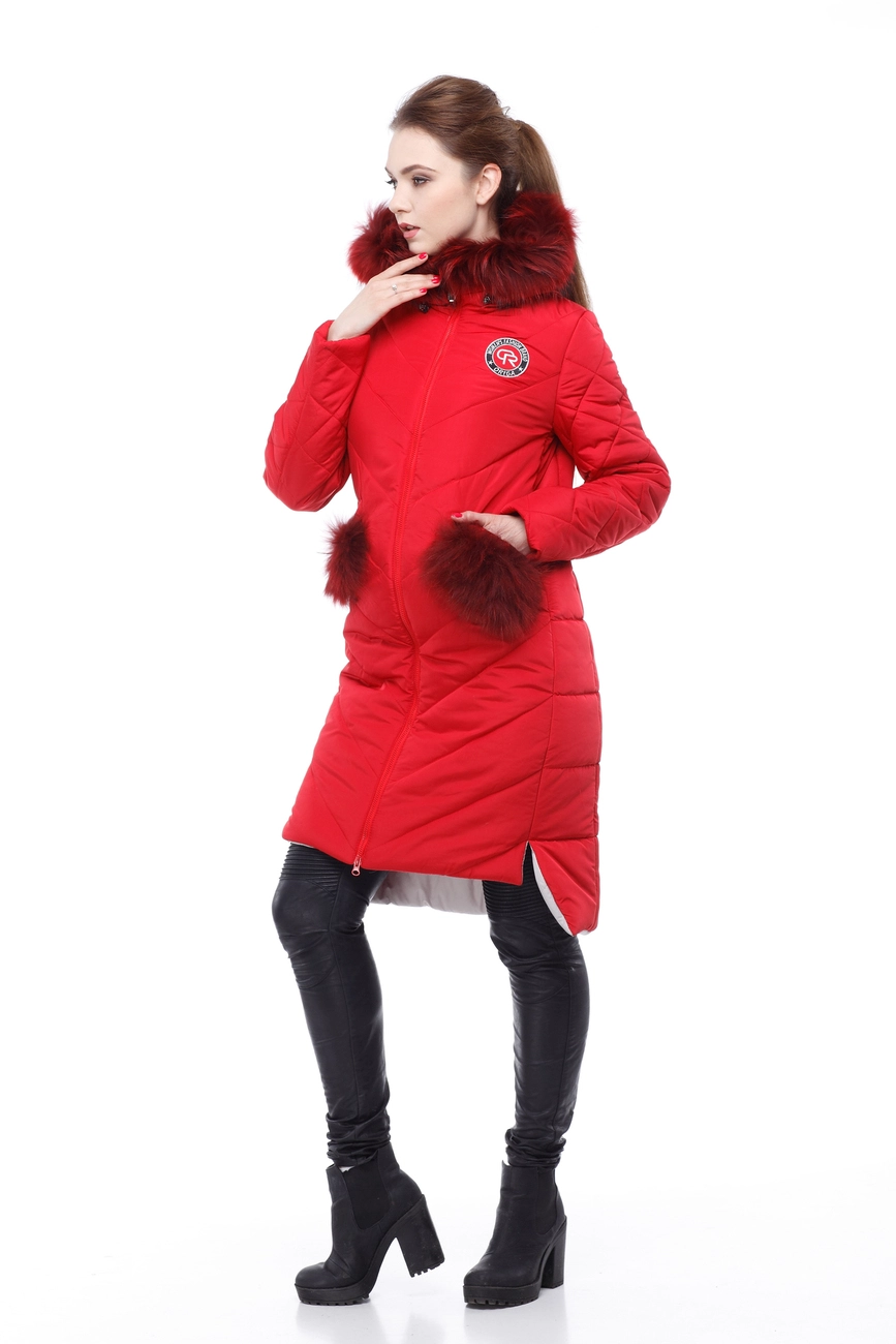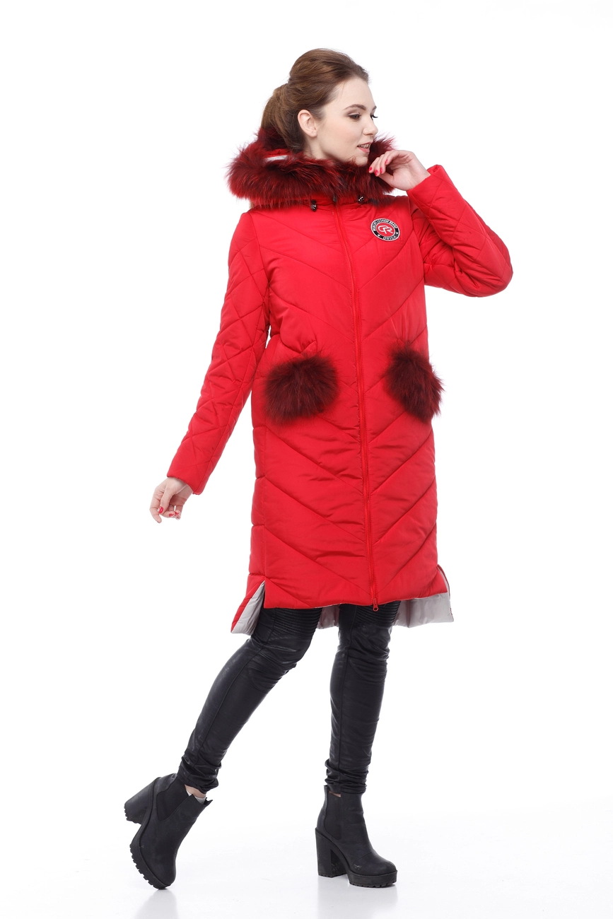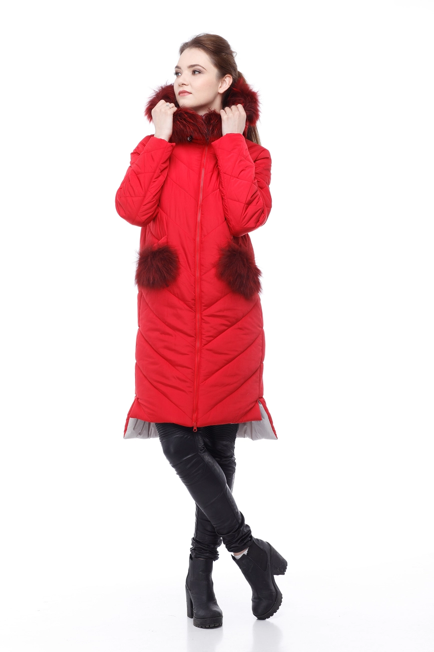 Зимнее пальто Монтана енот+клапан (ярко-красный+пломбир)