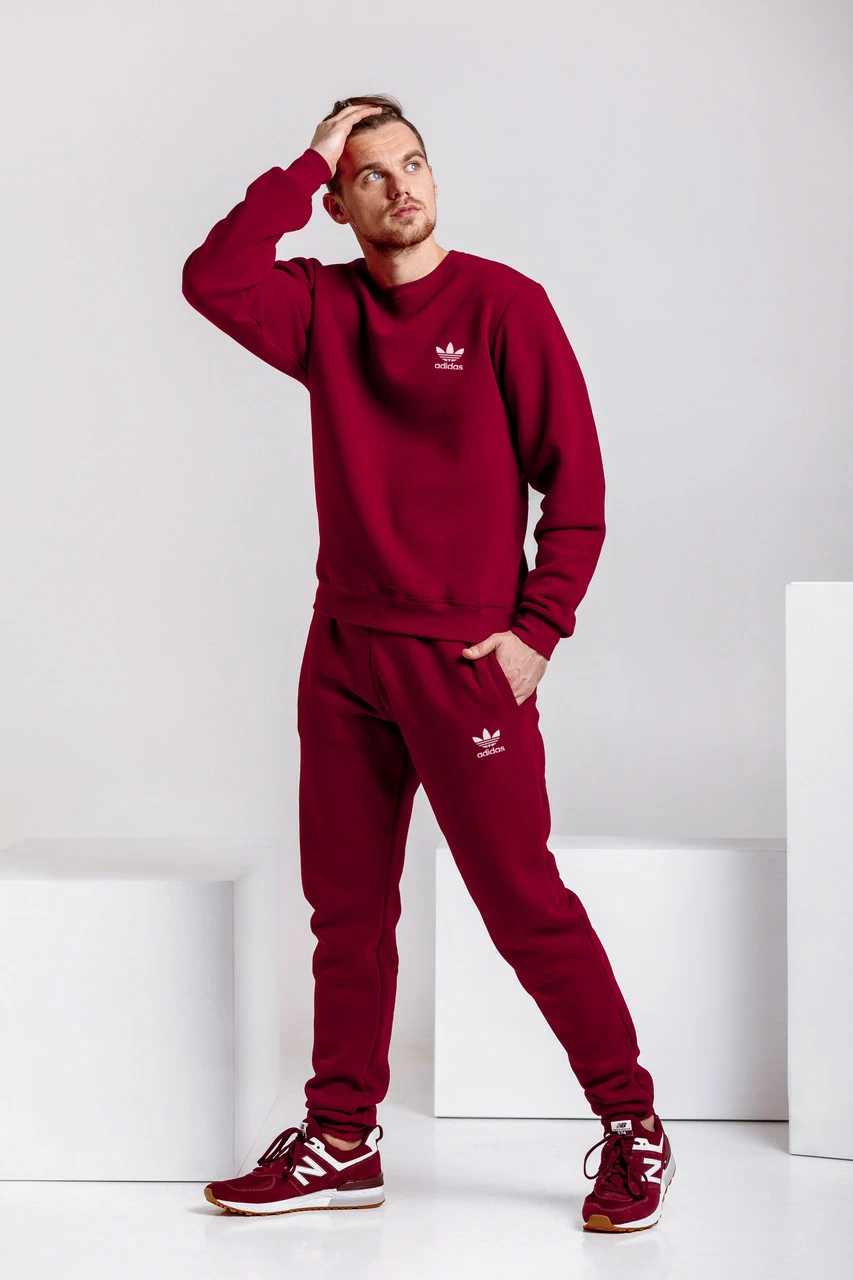 Зимний мужской спортивный костюм - бордовый теплый свитшот, бордовые теплые штаны (с лого любого бренда)