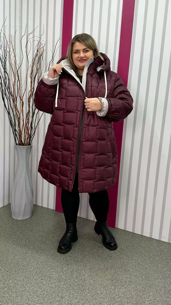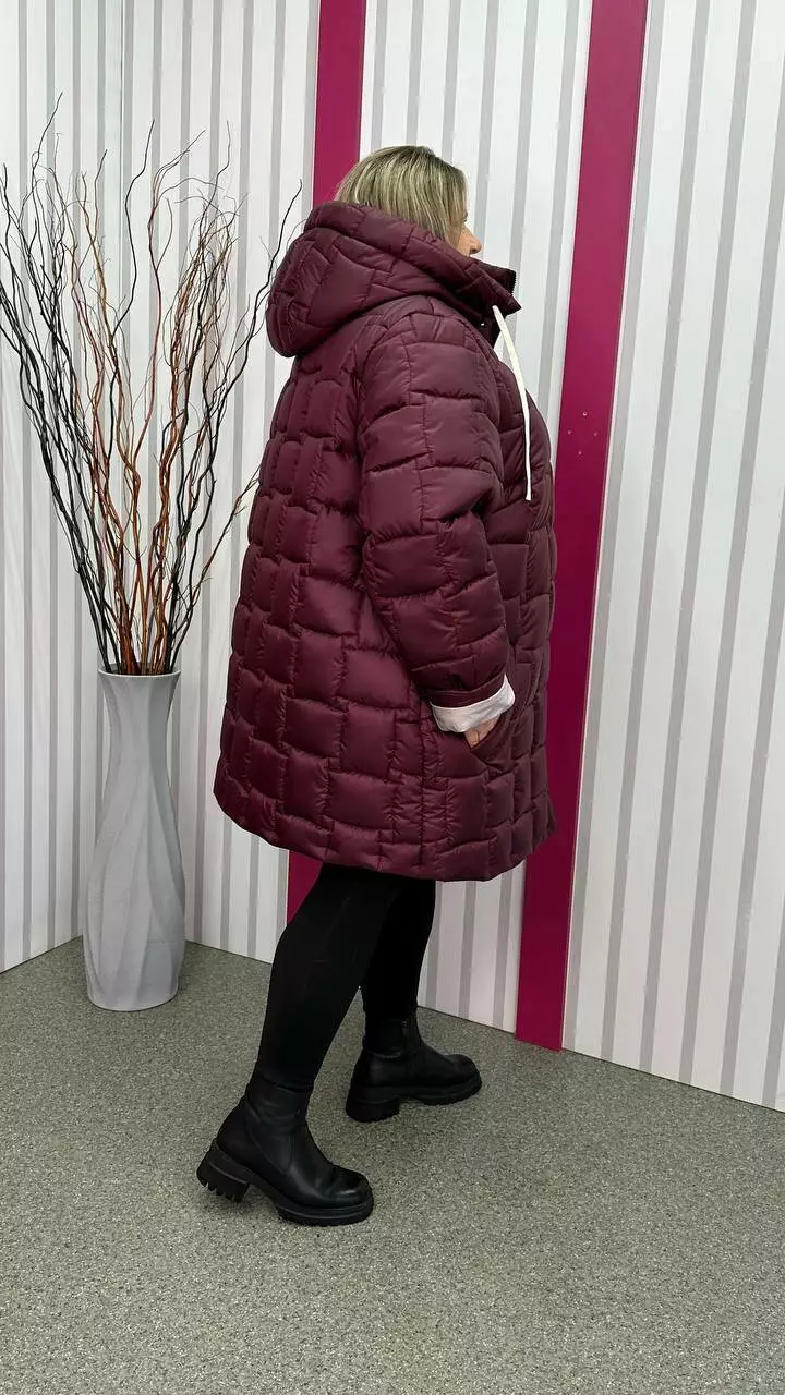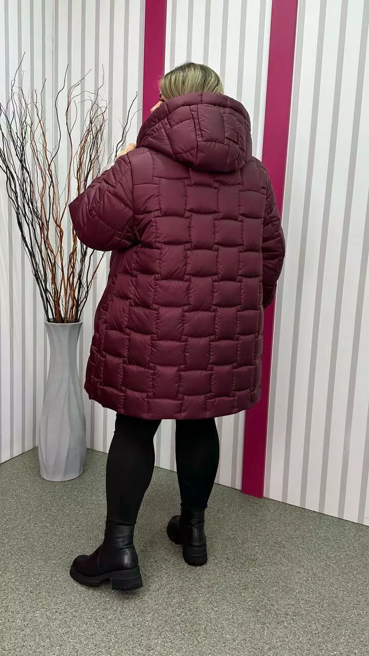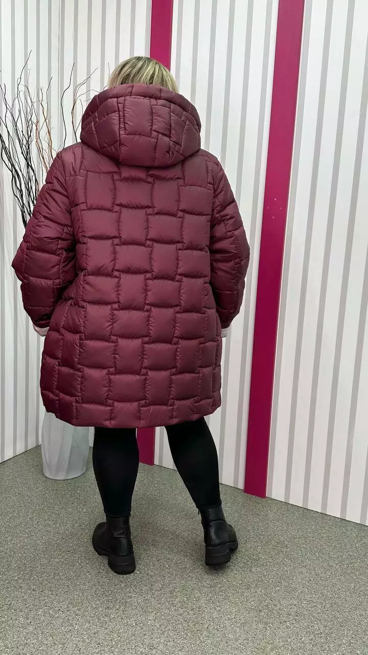 Зимова стьобана куртка "Бургунді" великого розміру 58-60 62-64 66-68 70-72 74-76