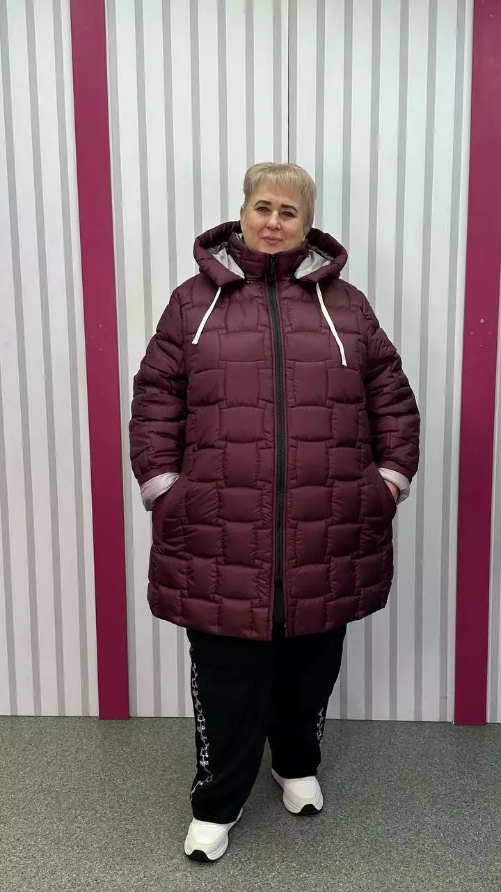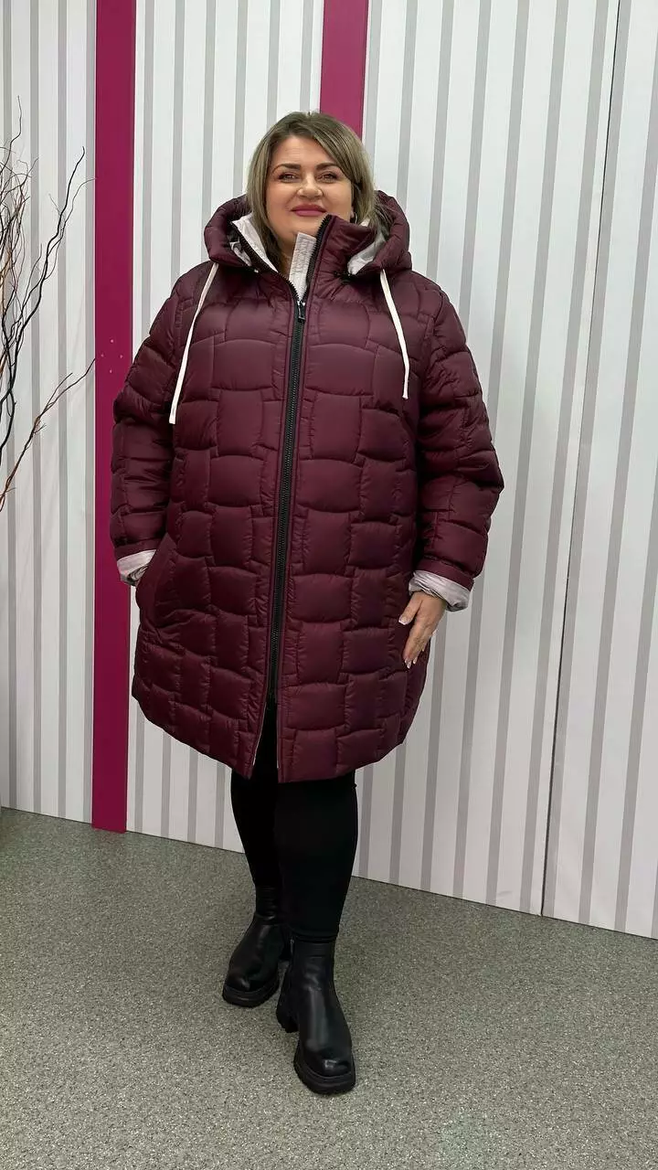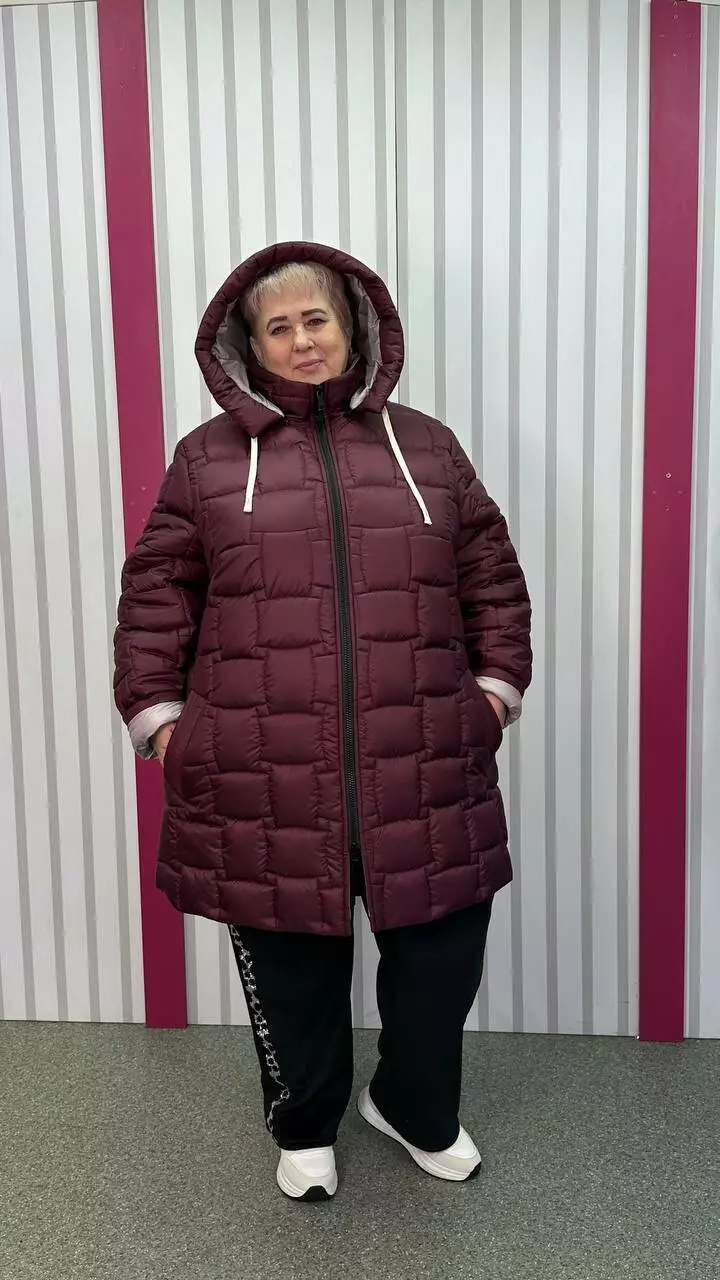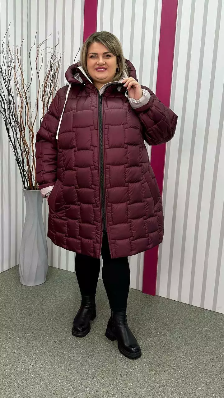 Зимова стьобана куртка "Бургунді" великого розміру 58-60 62-64 66-68 70-72 74-76