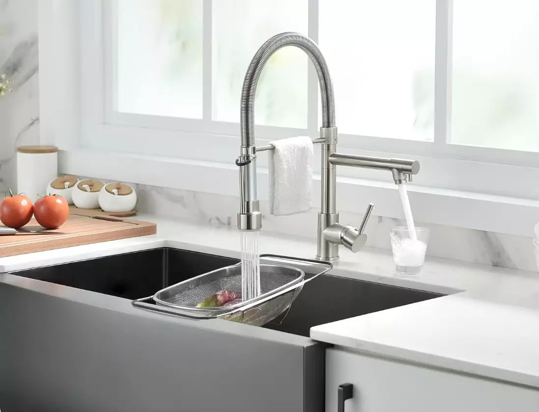 Цей кухонний змішувач поєднує практичність і стильний дизайн.
