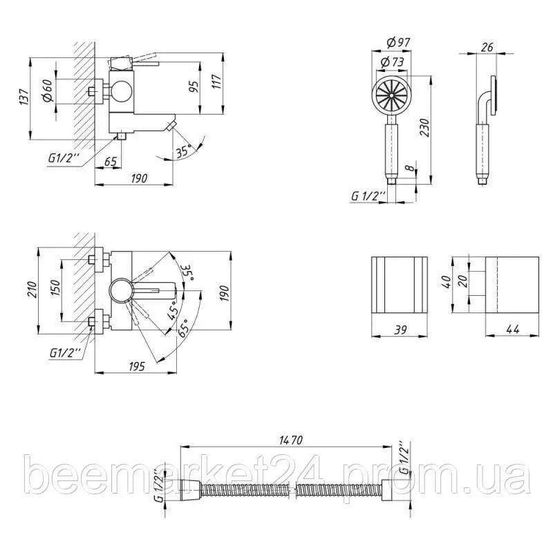 сторону. Змішувач монтується на стіну над ванною за допомогою
