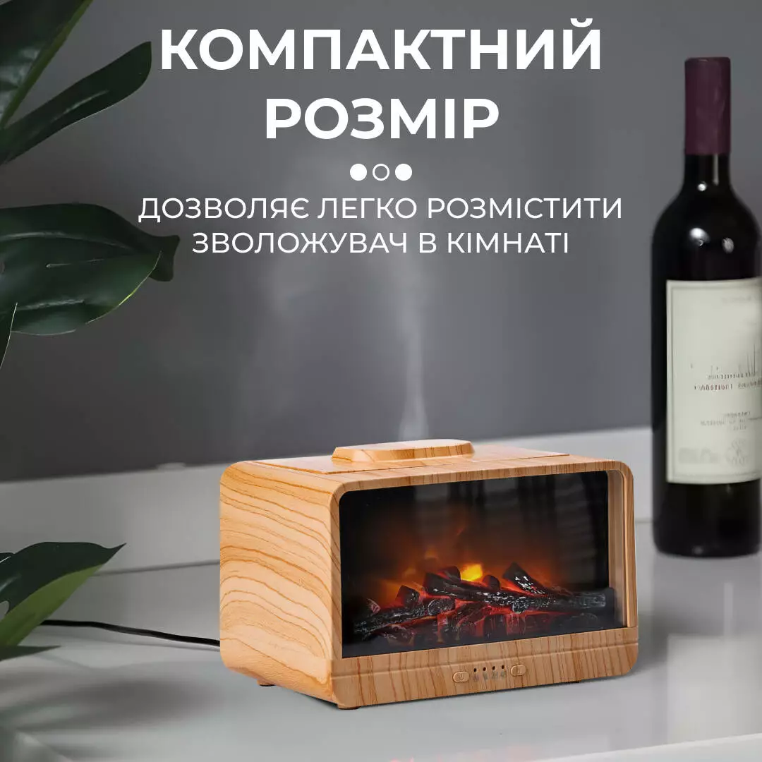 Зволожувач повітря Камін 300 мл з підсвічуванням, дерево